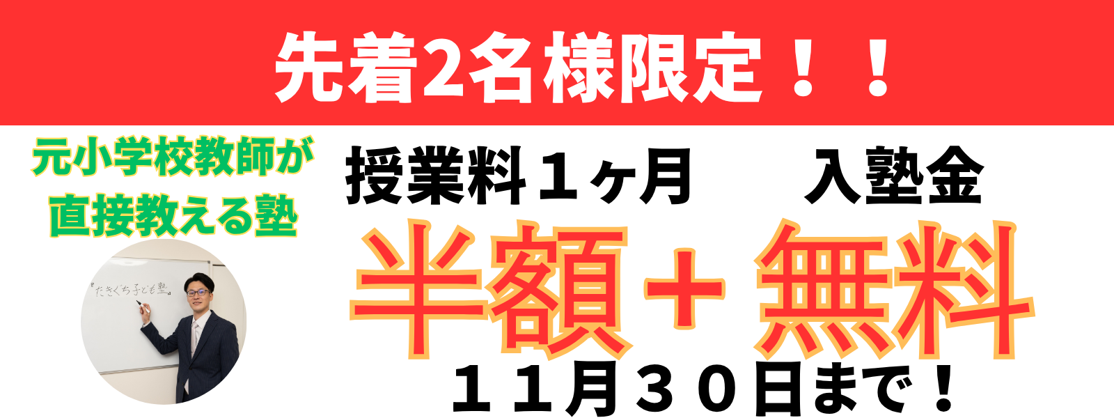 授業料1ヶ月分半額+入塾金無料の特別キャンペーン!