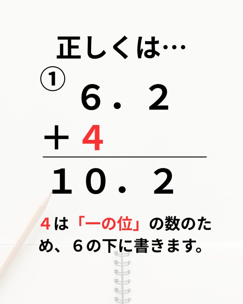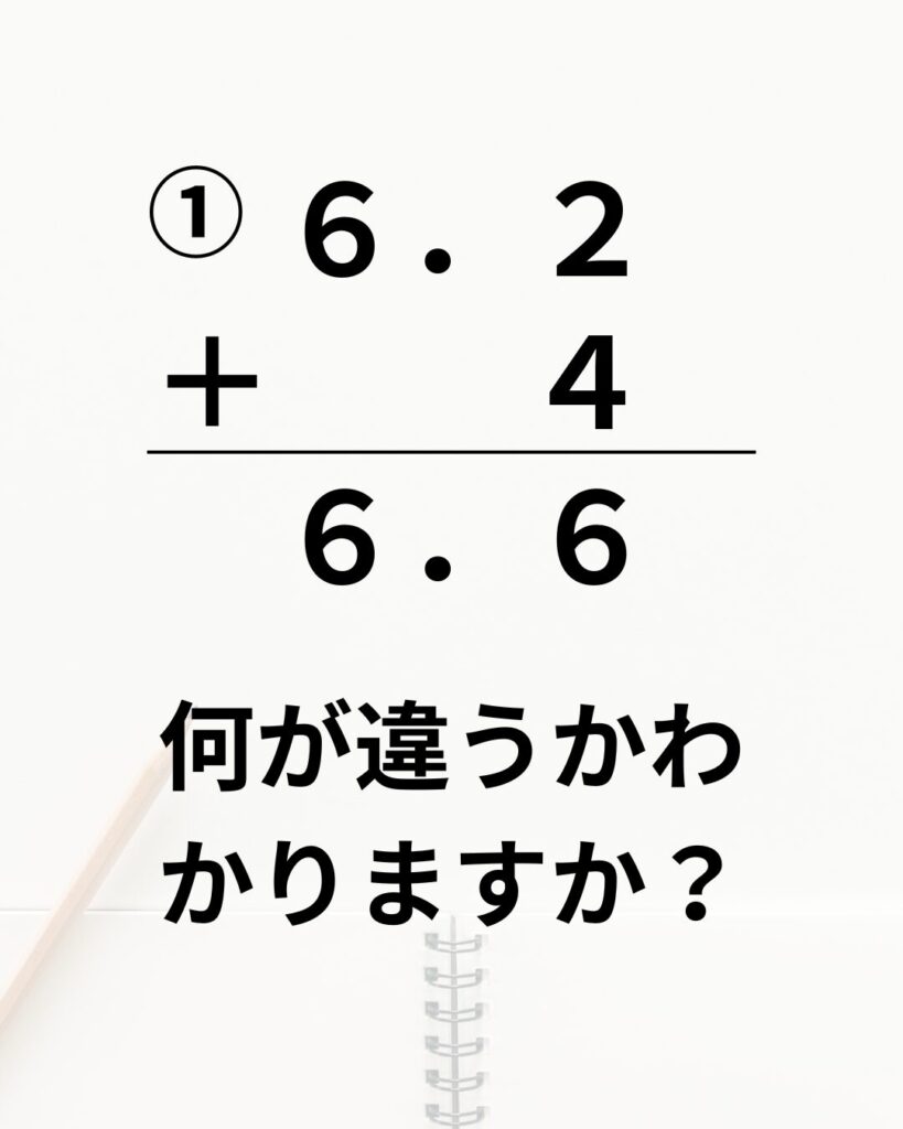 小数と小数の筆算よりも、整数と小数の筆算のほうが間違いが多くあります。