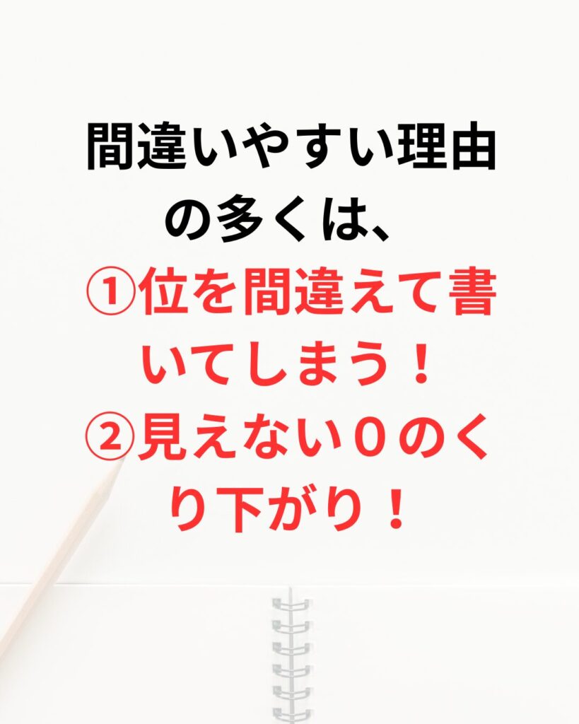 ①の計算の場合は位を間違えて書いてしまうことが原因の一つです!
